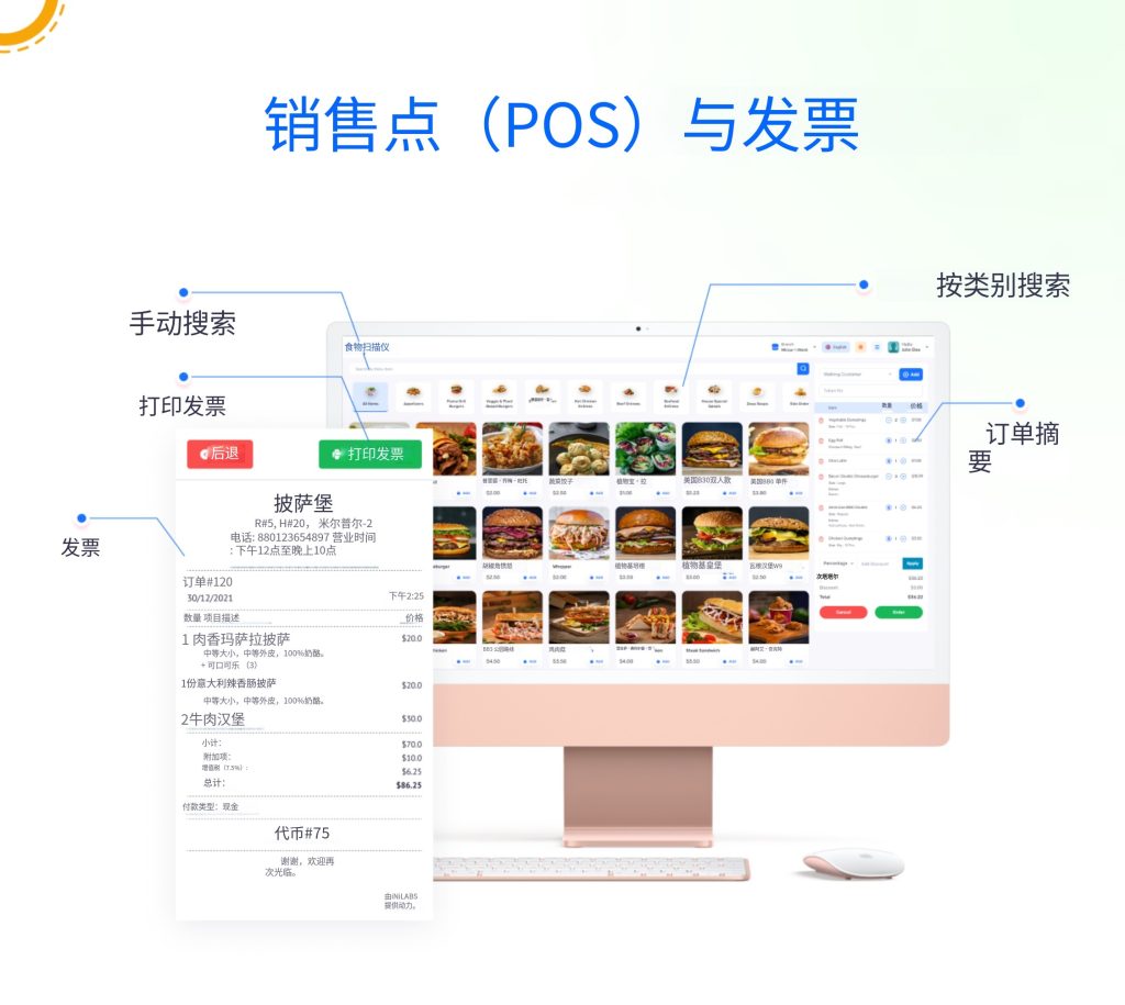 POS系统:支持堂食/外卖模式切换,可指定外卖员或关联餐桌,灵活选择打印订单或代客支付。