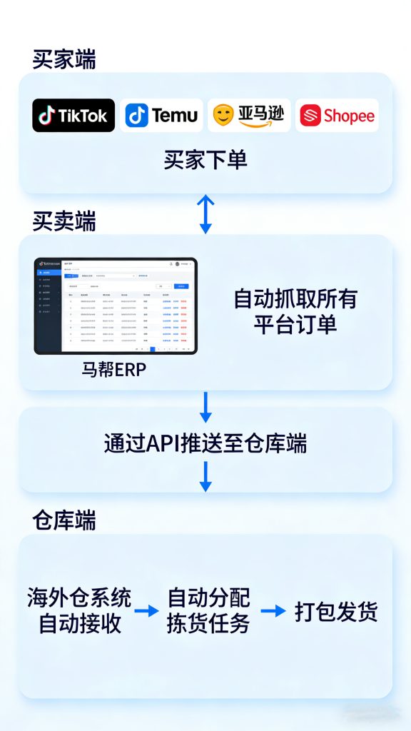 结合我最近帮一个客户(某中型海外仓)对接马帮的实操经验,这套“海外仓系统+马帮”的组合,至少解决了三个最头疼的问题: